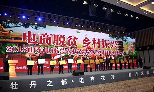 2018年12月11日,由山東省商務廳、菏澤市人民政府、阿里巴巴集團共同主辦2018山東電商興農扶貧大會在菏澤會盟臺隆重舉行。