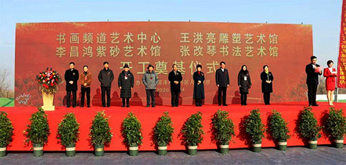 12月24日,中央數(shù)字電視書畫頻道藝術(shù)中心、王洪亮雕塑藝術(shù)館、李昌鴻紫砂藝術(shù)館、張改琴書法藝術(shù)館開工奠基儀式在牡丹區(qū)七里河舉行。