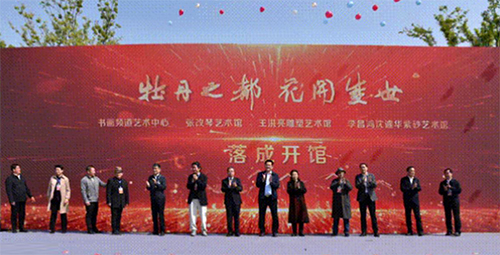 4月2日,牡丹區(qū)“三館一中心”開館儀式舉行,菏澤市委書記張新文,中央數(shù)字電視書畫頻道董事局主席王平,著名書法家張改琴,著名雕塑家王洪亮,著名紫砂大師李昌鴻分別致辭,市領(lǐng)導(dǎo)王衛(wèi)東、周生宏、孔祥巖、張鵬、黃秀玲、時(shí)圣恩等參加。
