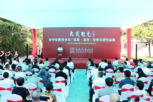 7月18日,大哉乾元—?jiǎng)⑹匕步淌跁鴮憽吨芤住ひ讉鳌方?jīng)典文辭作品展在菏澤市曹州書畫院舉辦。該活動(dòng)由中國(guó)傳媒大學(xué)主辦,菏澤學(xué)院、菏澤市文聯(lián)、曹州書畫院承辦,山東明德物業(yè)管理集團(tuán)協(xié)辦。