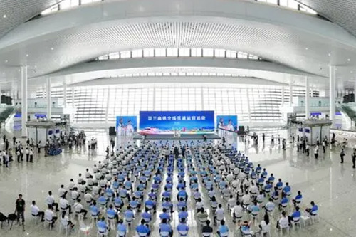 7月18日,日蘭高鐵全線貫通運(yùn)營(yíng)活動(dòng)在菏澤東站、蘭考南站同時(shí)舉行。河南省委常委、常務(wù)副省長(zhǎng)孫守剛致辭并宣布日蘭高鐵全線貫通運(yùn)營(yíng),山東省副省長(zhǎng)宋軍繼出席活動(dòng)并致辭;國(guó)鐵濟(jì)南局董事長(zhǎng)貫昌奉,菏澤市委書記張倫,市委副書記、市長(zhǎng)李春英,市人大常委會(huì)主任王磊,市政協(xié)主席王衛(wèi)東,市領(lǐng)導(dǎo)周生宏、肖友華、朱中華等參加菏澤東站活動(dòng)。