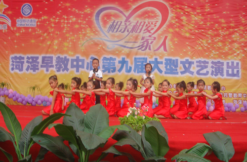2011年8月27日,由菏澤市早教中心主辦的“相親相愛(ài)一家人”菏澤早教中心第九屆大型文藝演出在校園操場(chǎng)舉行。所有節(jié)目由老師和孩子們共同創(chuàng)作排練,孩子們積極參與,各展才藝,精彩的表演形式,豐富多彩的節(jié)目讓大家度過(guò)了快樂(lè)的一天。