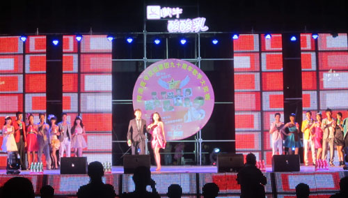 本場(chǎng)比賽由市電視臺(tái)節(jié)目主持人志強(qiáng)、丁珂以及兩名醫(yī)專學(xué)生共同主持,醫(yī)專師生五千余人歡聚一堂,共同渡過(guò)了一個(gè)美好的夜晚。經(jīng)過(guò)預(yù)賽、復(fù)賽,層層選拔出的20名選手,在奢華的舞臺(tái)上最終角逐,16號(hào)選手夏勝楠?jiǎng)俪觯@得了本次比賽的冠軍。觀眾們激情高昂,手中的熒光棒與多變的燈光、LED大屏幕相輝映,比賽現(xiàn)場(chǎng)始終洋溢著和諧與歡樂(lè)的氣氛。