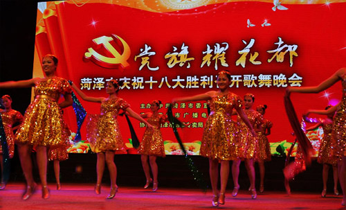 11月12日晚,由中共菏澤市委宣傳部主辦,菏澤市廣播電視臺(tái)承辦的“黨旗耀花都——菏澤市慶祝十八大勝利召開歌舞晚會(huì)”在電視臺(tái)演播大廳隆重舉行。