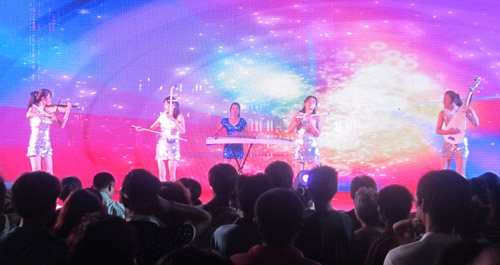 晚會在開場舞蹈《東方斯卡拉》中拉開帷幕,動感的舞曲、激情的表演瞬間引爆全場。聲情并茂的經(jīng)典愛情詩詞誦讀,魔術(shù)表演、情侶互動等精彩紛呈的節(jié)目贏得了觀眾陣陣掌聲;優(yōu)雅的女子新民樂、魔幻的水晶球芭蕾、專業(yè)水準(zhǔn)的模特走秀讓現(xiàn)場觀眾的情緒更加高漲。晚會最后,歌伴舞《相親相愛》為本場七夕活動畫上了完美的句號。LED電子屏、燈光、線陣音響的專業(yè)舞美效果配合演員的精彩演出,讓巨野市民欣賞到了一場美輪美奐的視聽盛宴。 | |