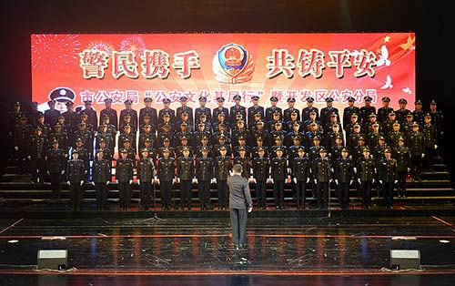 開(kāi)發(fā)區(qū)分局局長(zhǎng)劉述勤首先向全場(chǎng)觀(guān)眾介紹了開(kāi)發(fā)區(qū)公安隊(duì)伍的工作情況。一曲開(kāi)場(chǎng)舞《辛苦了》,拉開(kāi)了匯演的序幕。歌曲、舞蹈、戲曲、小品、詩(shī)朗誦、警體表演等一個(gè)個(gè)節(jié)目精彩不斷,為現(xiàn)場(chǎng)每一位觀(guān)眾展示了別樣民警風(fēng)采。開(kāi)發(fā)區(qū)公安分局民警的大合唱《一二三四歌》將演出推向了高潮,充分展現(xiàn)了民警隊(duì)伍良好的精神面貌和公安工作豐碩成果。 | |