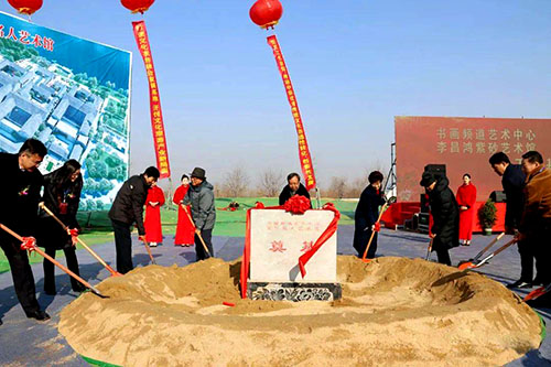 12月24日,中央數(shù)字電視書畫頻道藝術(shù)中心、王洪亮雕塑藝術(shù)館、李昌鴻紫砂藝術(shù)館、張改琴書法藝術(shù)館開工奠基儀式在牡丹區(qū)七里河舉行。