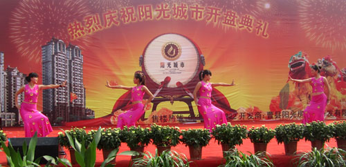 9:58,相關(guān)領(lǐng)導(dǎo)為陽光城市正式開盤啟動水晶球,軍樂隊、舞獅隊表演,彩煙、禮花炮、皇家禮炮齊鳴,陽光城市開盤典禮圓滿結(jié)束,各位領(lǐng)導(dǎo)和嘉賓共同欣賞了舞蹈、豫劇小品、歌曲串燒、人體彩繪、戲曲大聯(lián)唱等精彩的文藝節(jié)目。